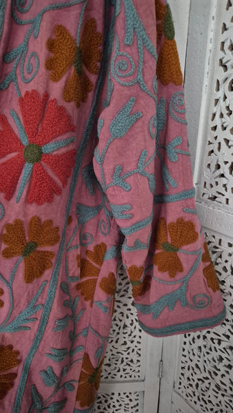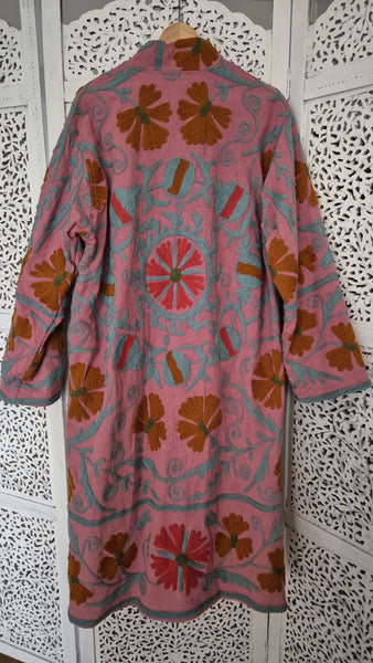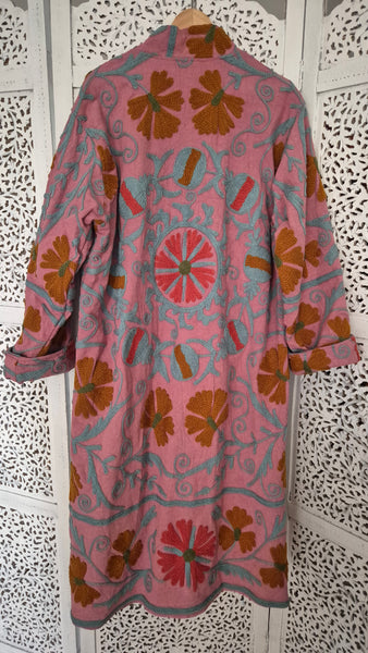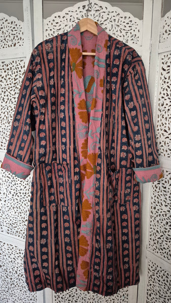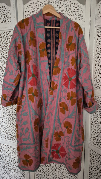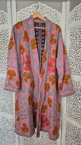 Uma vändbar broderad kappa med fickor i one size: M - XXL.